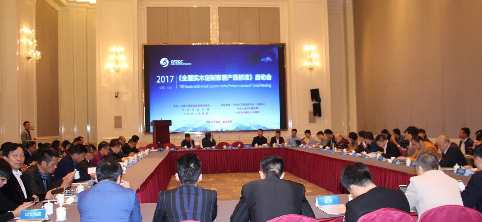 《全屋實(shí)木定制家居產(chǎn)品標(biāo)準(zhǔn)》啟動(dòng)會(huì)于2017年10月21日在安徽省六安市舉行,出席本次啟動(dòng)會(huì)的到場(chǎng)嘉賓有全國(guó)工商聯(lián)家具裝飾業(yè)商會(huì)秘書(shū)長(zhǎng)張仁江、六安市葉集區(qū)人民政府區(qū)長(zhǎng)汪宏軍、國(guó)家建筑材料測(cè)試中心部長(zhǎng)胡云林、全國(guó)工商聯(lián)家具裝飾業(yè)商會(huì)副秘書(shū)長(zhǎng)、定制家居專委會(huì)秘書(shū)長(zhǎng)王延平,中共六安市葉集區(qū)委常委、統(tǒng)戰(zhàn)部長(zhǎng)朱潔平,中共六安市葉集區(qū)委統(tǒng)戰(zhàn)部副部長(zhǎng)、工商聯(lián)黨組書(shū)記吳昊、安徽葉集經(jīng)濟(jì)開(kāi)發(fā)區(qū)黨工委書(shū)記田紅斌,六安市葉集區(qū)招商局局長(zhǎng)程千友等來(lái)自全國(guó)各地四十多家優(yōu)秀企業(yè),60余企業(yè)代表共同參與本次啟動(dòng)會(huì)。